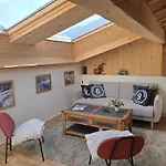 O apartamento Le Top Des Praz Chamonix de 2 quartos oferece quartos com vista para a montanha e localização a uma distância aproximada de 25 minutos a pé de Le Brevent Ski Lift.